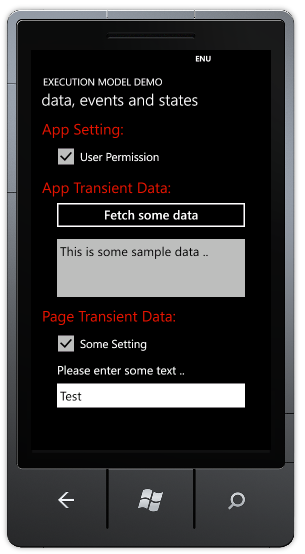 Now, let’s take a look at what kind of data we are trying to preserve & hydrate/dehydrate during our application’s Execution Model. In my opinion, application data on Windows Phone is of two types: