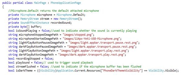 1. Microphone class: This is the class provided by the Microsoft.Xna.Framework.Audio namespace that allows us access to the microphone api.