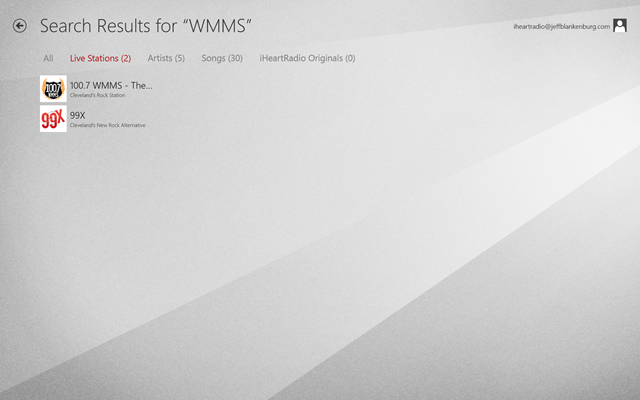 For example, the iHeartRadio app.  If I’m searching that, I’m likely looking for a radio station.