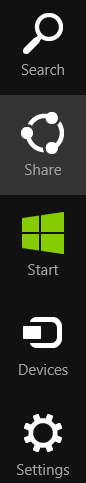 day5-charms-side Over the past two days we’ve jumped into this new Windows 8 feature: contracts. We introduced this notion of contracts by exploring how to incorporate Settings into our applications. Then we explored extending our applications presence to users with Search. Today we’re going to take the next step and explore one of the features that gets both Clark and I really excited, Sharing.