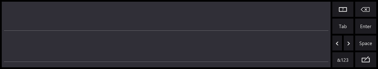 Obviously, this is a huge set of input points for us as developers, and by providing the right keyboard for the job will make your app more useful to your users. There’s also one more keyboard layout, and that’s the one for a PasswordBox control. A PasswordBox control shows symbols instead of the actual characters that were typed, and the keyboard looks like this: