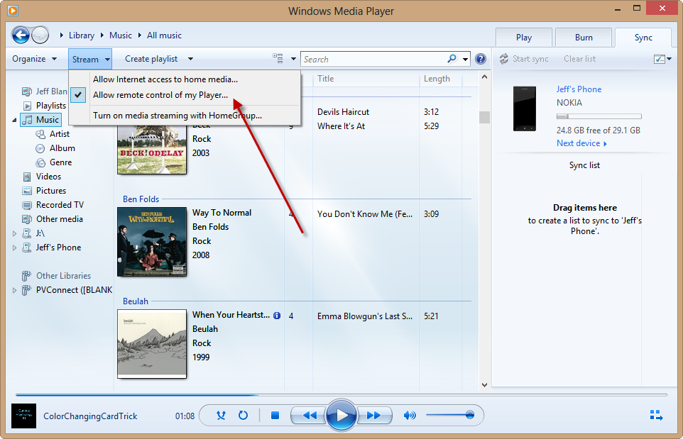 Select the “Allow remote control of my Player…” option. You’ll be asked to confirm your choice, just to make sure this is actually what you want to do.