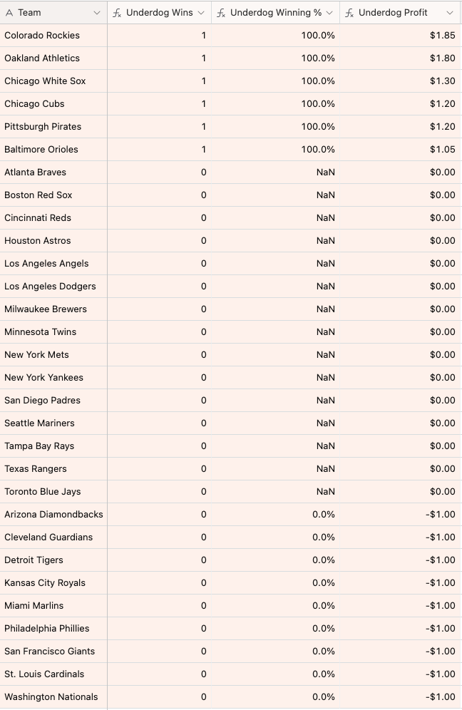 | 6-9 | 6-9 (40%) | -$0.60 | -$0.60 |